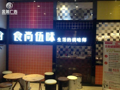 在结构处理上,由室内天花的平行关系和发光字的垂直关系组合成空间造型,这种空间造型的几个体面目互交替展现出导识设计的结构之美,室内天花的厚度与发光字结构的厚度也高度统一,并产生出一种节奏,这样的节奏所带给人们的是安静与平和。fdcled发光字-亮化工程-发光字制作工厂-东莞市金笛广告有限公司